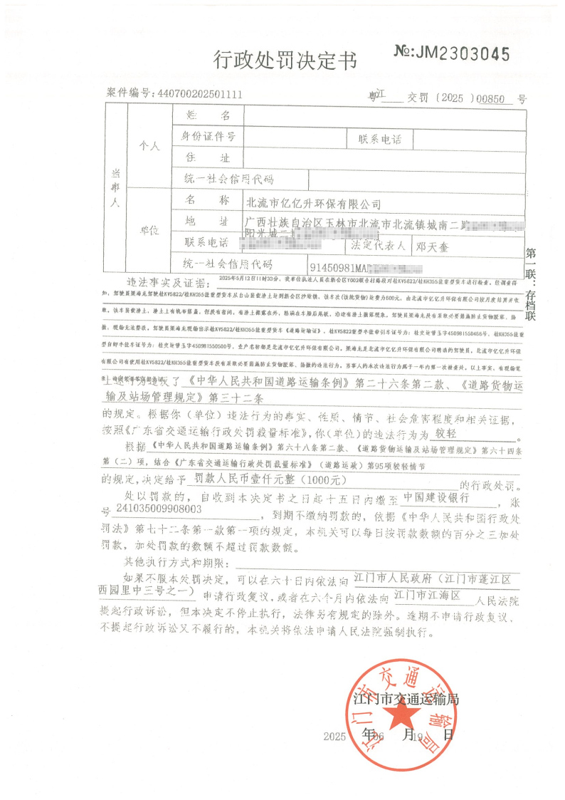 北流市亿亿升环保有限公司: