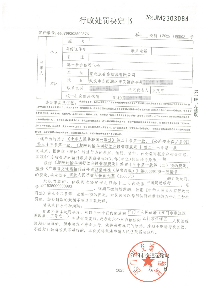 你(单位)因违反交通运输行政管理法规,本机关已作出行政处罚决定和责令改正通知书(具体内容详见附件)。依照《中华人民共和国民事诉讼法》第九十五条的规定,因受送达人采用其他方式无法送达,现向你(单位)公告送达《行政处罚决定书》和《责令改正通知书》。自公告之日起,经过30日即视为送达。