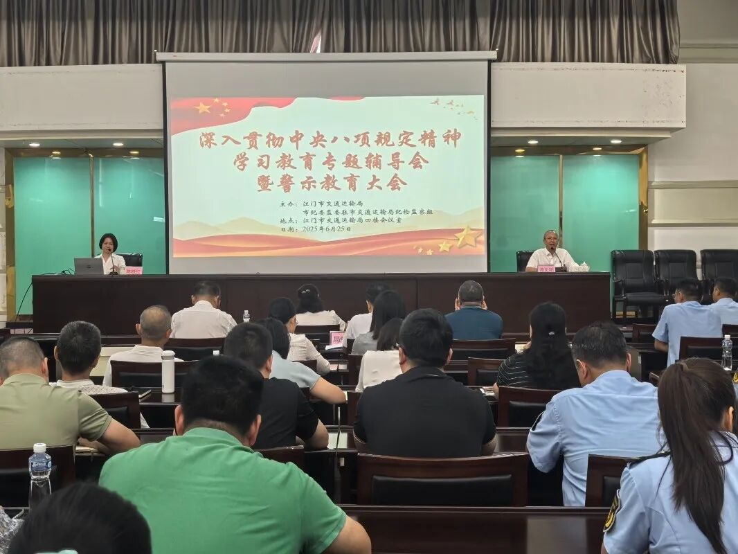 6月25日,江门市交通运输局召开深入贯彻中央八项规定精神学习教育专题辅导会暨警示教育大会,邀请市纪委监委案件审理室主任陈晓红作专题辅导。会议由江门市交通运输局党组书记谭炎明主持,局领导班子成员及党员干部共100余人参加。