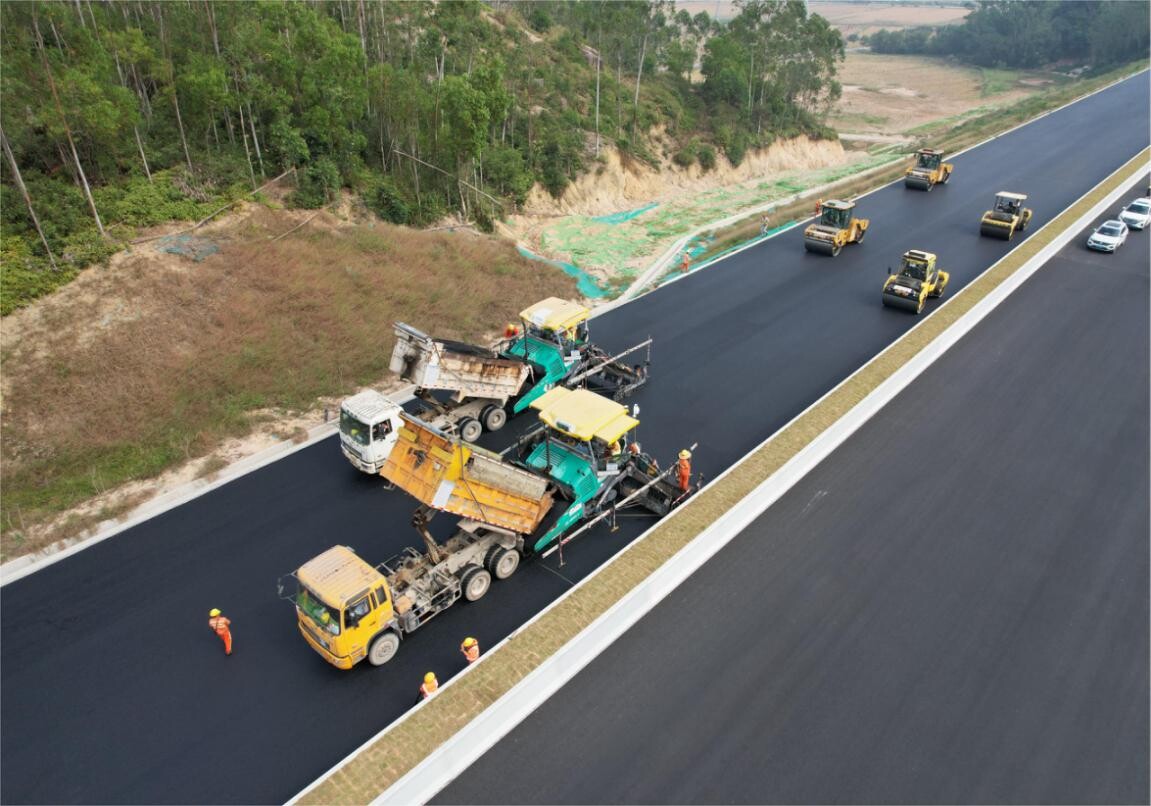 12月4日,经过4个多小时的施工,黄茅海跨海通道T10标段顺利完成SMA-13沥青上面层试验段铺筑,此次试验段长度为600米,设计宽度15.25米,设计混合料约920吨,压实厚度4厘米。