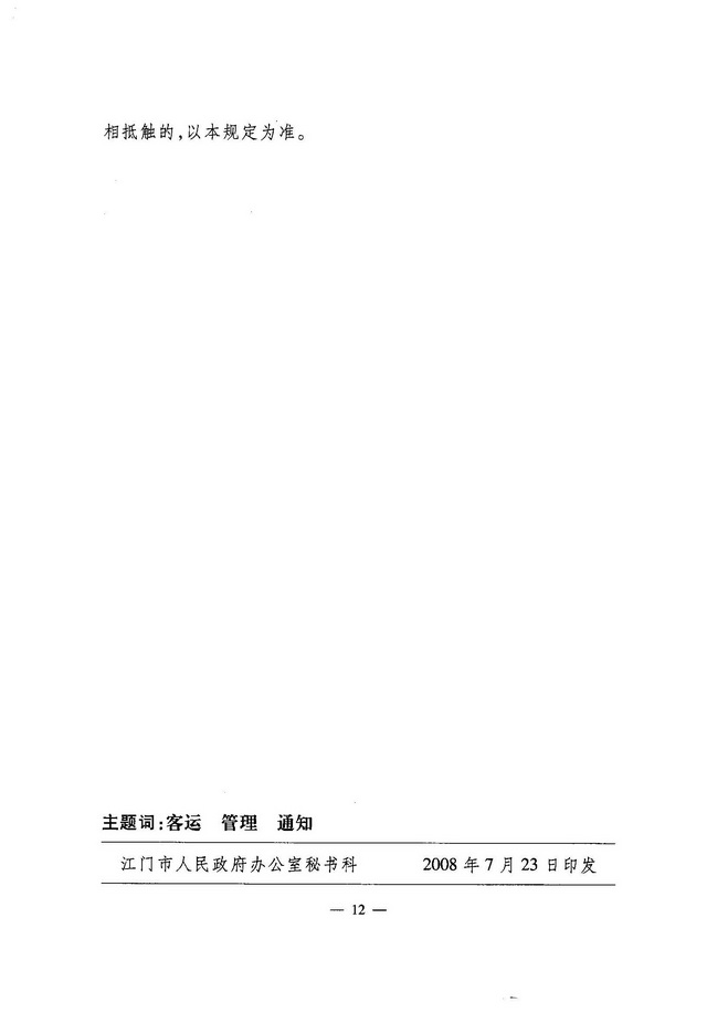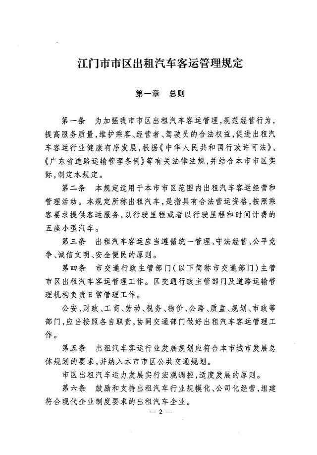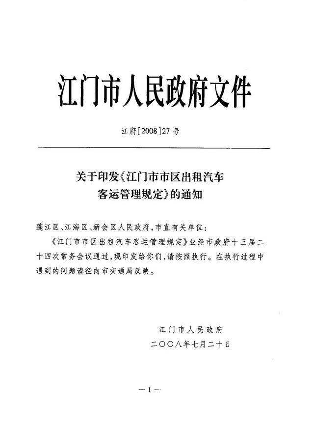 关于印发《江门市市区出租汽车客运管理规定》的通知 【已废止】