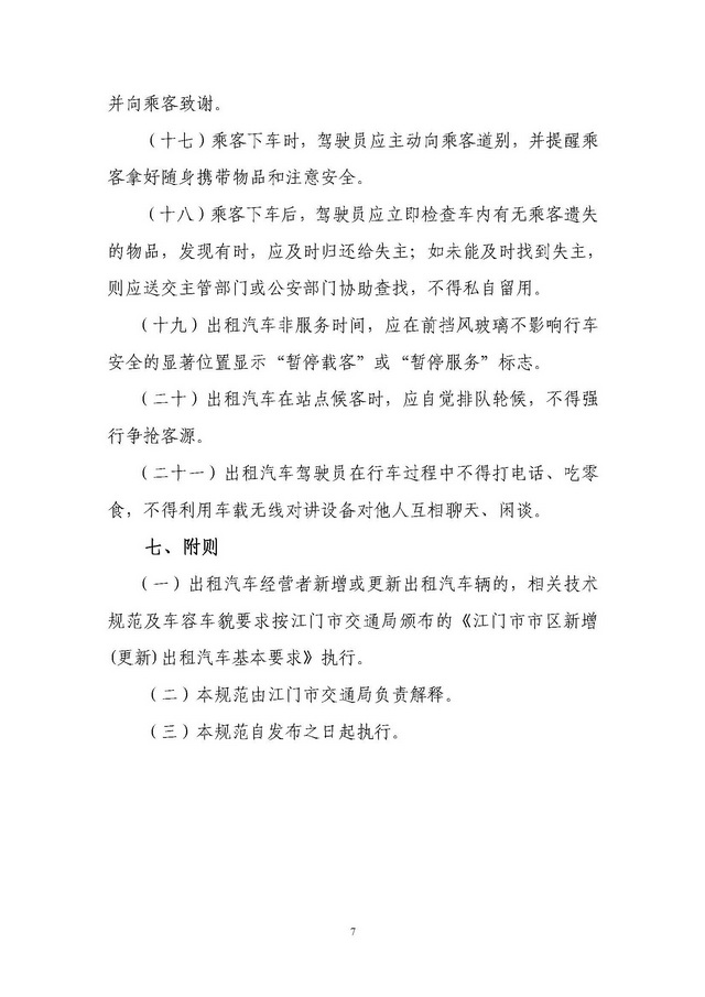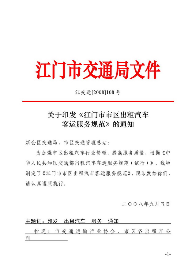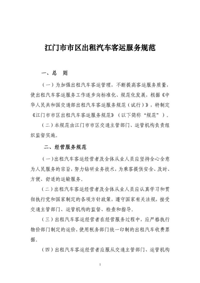 关于印发《江门市市区出租汽车客运服务规范》的通知 【已废止】