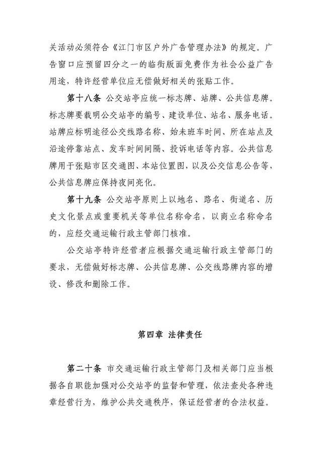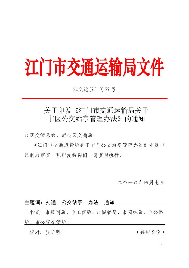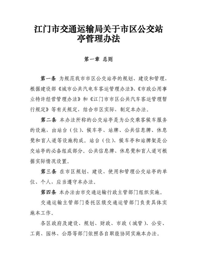 关于印发《江门市交通运输局关于市区公交站亭管理办法》的通知 【已废止】