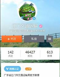 (四)畅通公开渠道。2015年我局新浪政务微博(http://weibo.com/jmsjtysj)和腾讯政务微博(http://t.qq.com/jmsjtysj2013)推送了各种多元化的动态信息和行业资信,通过江门交通运输信息简报、江门日报、江门电视台等方式畅通公开渠道,拓展交通运输政务信息的影响力。同时通过部门网站和政府热线12345为群众提供政策咨询、受理交通诉求和投诉服务,积极解决群众所关心的热点问题。