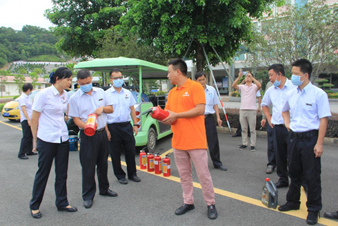 上图为广东省深华消防设备工程股份有限公司专业工程师对灭火器的结构、使用方法进行现场讲解![]()