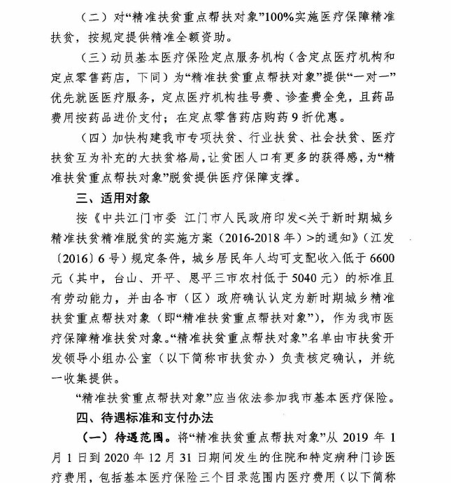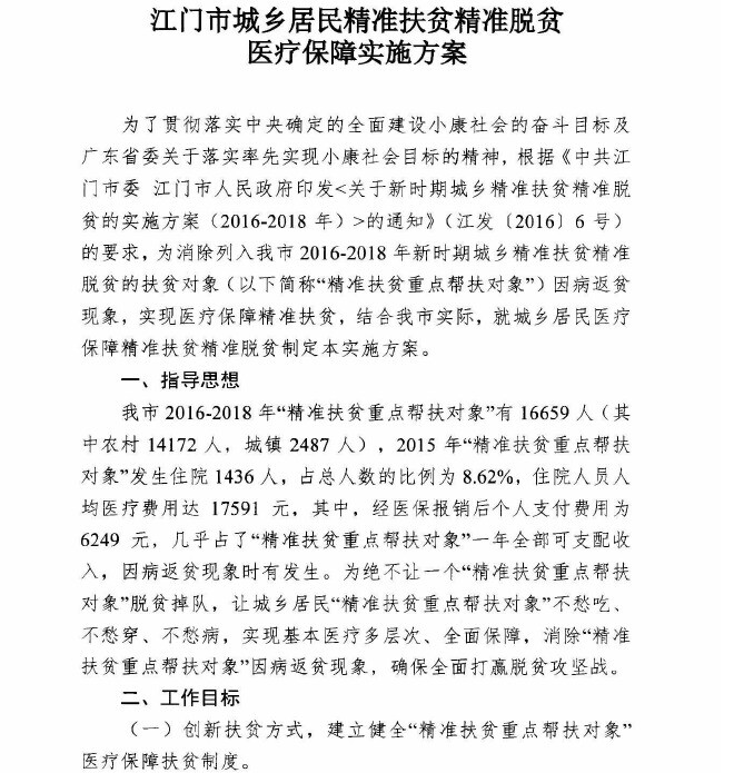 江门市人力资源和社会保障局 江门市扶贫开发领导小组办公室 江门市财政局 江门市民政局 江门市卫生和计划生育局关于印发江门市城乡居民精准扶贫精准脱贫医疗保障实施方案的通知【已废止】