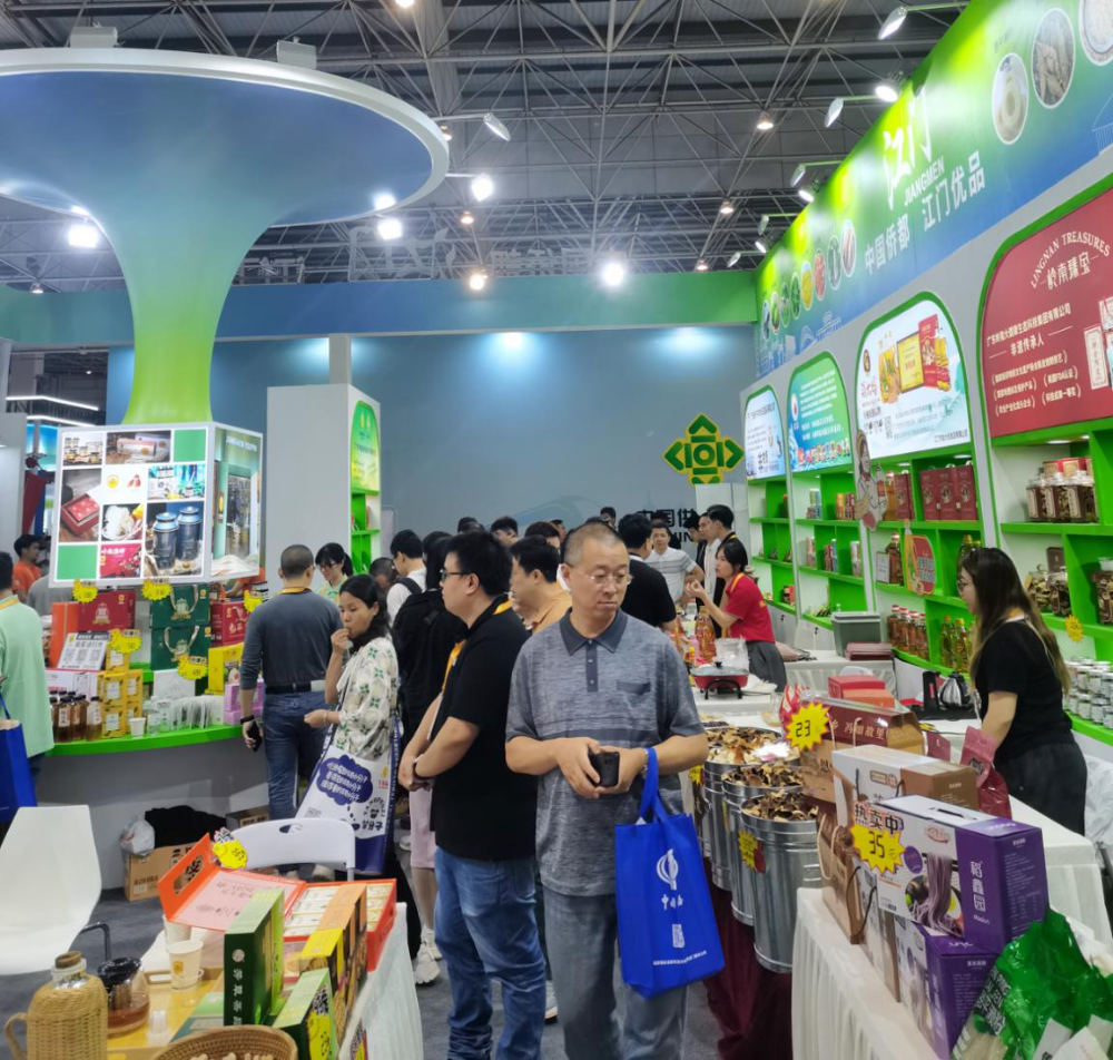 为充分展示江门农业发展成果,江门市农业农村局精心谋划,在馆内打造了108平方米的特装“江门馆”,并安排6个食品展位,组织17家企业参展。展品涵盖新会陈皮、马冈鹅、禽蛋、大米、茶叶、预制菜,以及锦鲤、花卉等,种类丰富,集中呈现了江门农业的特色与优势。