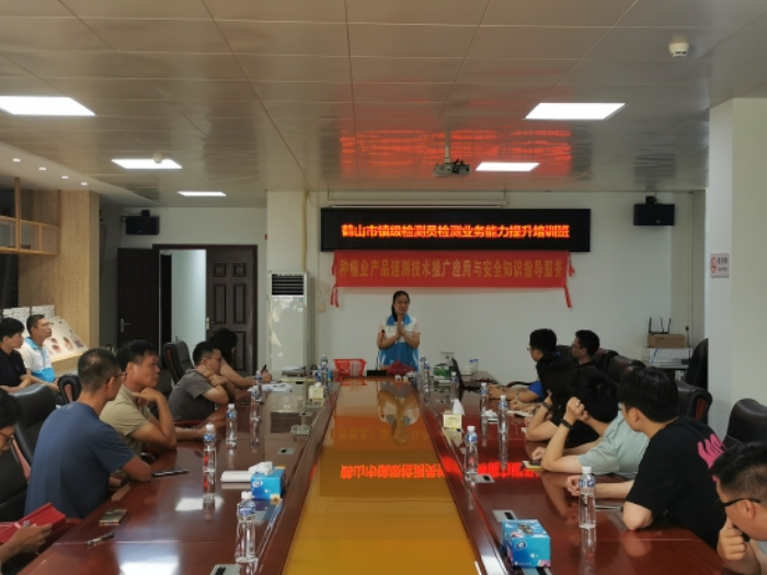 鹤山市农产品质量监督检验测试中心农艺师郑乐涛讲授了镇级检测站检测工作常见问题的解决方法,并对镇级检测仪器设备进行示范操作培训。