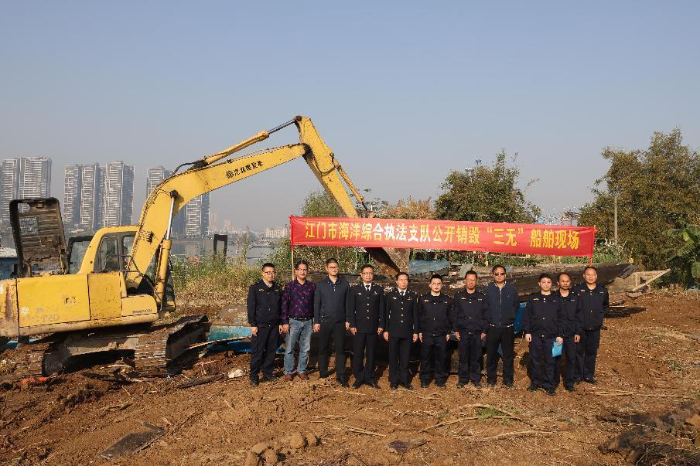 2024年1月15日至26日,江门市海洋综合执法支队在蓬江区举办2024年拆解销毁涉渔“三无”船舶现场会,公开集中销毁前期依法没收的85艘涉渔“三无”船舶。江门市海洋综合执法支队、江门海事局、蓬江区农业农村和水利局等部门共17人参加了现场会,共同见证了该批涉渔“三无”船舶的拆解销毁活动。