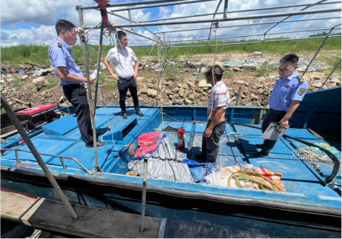 7月4日,市海洋综合执法支队联合佛山市农业农村局在西江(佛山-江门交界水域)开展打击涉渔“三无”船舶专项执法行动,依法查扣涉渔“三无”船舶9艘。