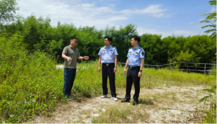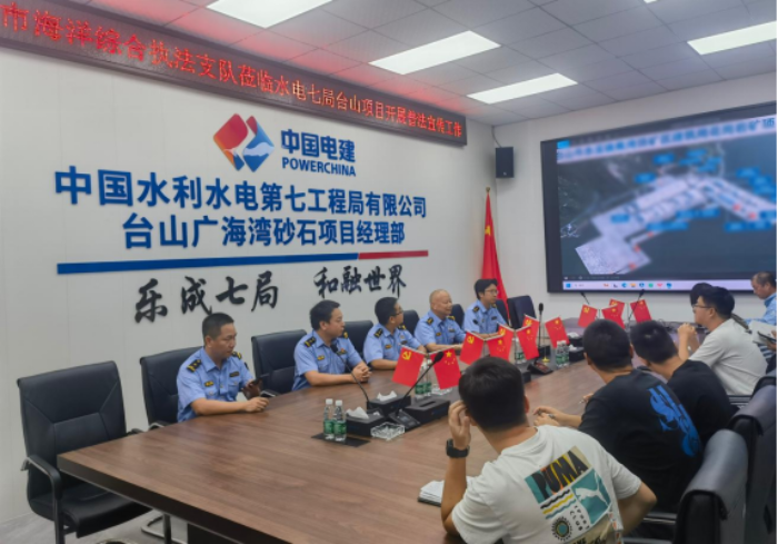 8月8日,市海洋综合执法支队副支队长林为民带队,组织台山大队对台山市赤溪镇礁湾顶矿物流园区砂石仓储工程用海情况进行检查,并向企业负责人解读有关用海政策。