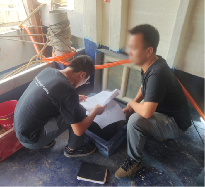 8月14日,市海洋综合执法支队对台山核电一期工程项目用海情况进行检查,并向企业负责人解读有关用海政策。