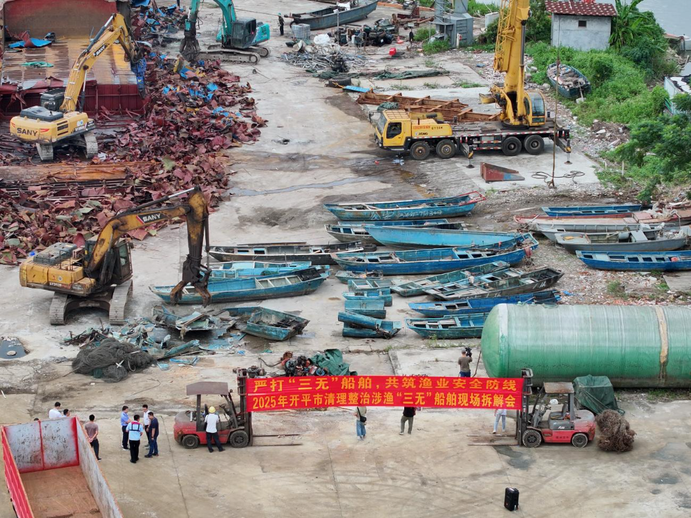 8月29日,市海洋综合执法支队参加开平市2025年清理整治涉渔“三无”船舶现场拆解会活动,本次活动共拆解销毁涉渔“三无”船舶27艘。