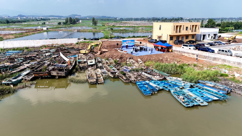 9月18日,市海洋综合执法支队在新会区双水镇举办2025年江门市涉渔“三无”船舶集中公开拆解现场会,本次活动共拆解销毁107艘涉渔“三无”船舶及一批违规渔具。省海洋综合执法总队、直属二支队、江门支队以及新会区政府、海警、公安等部门相关负责同志参加此次活动。