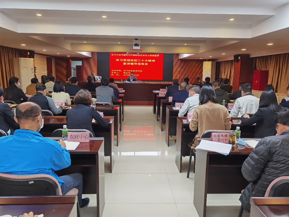 3月27日上午,市农业农村局召开学习贯彻党的二十大精神宣讲辅导报告会,邀请了五邑大学党委副书记、校长张运华同志授课。报告会由市农业农村局党组书记、局长郑少强同志主持。