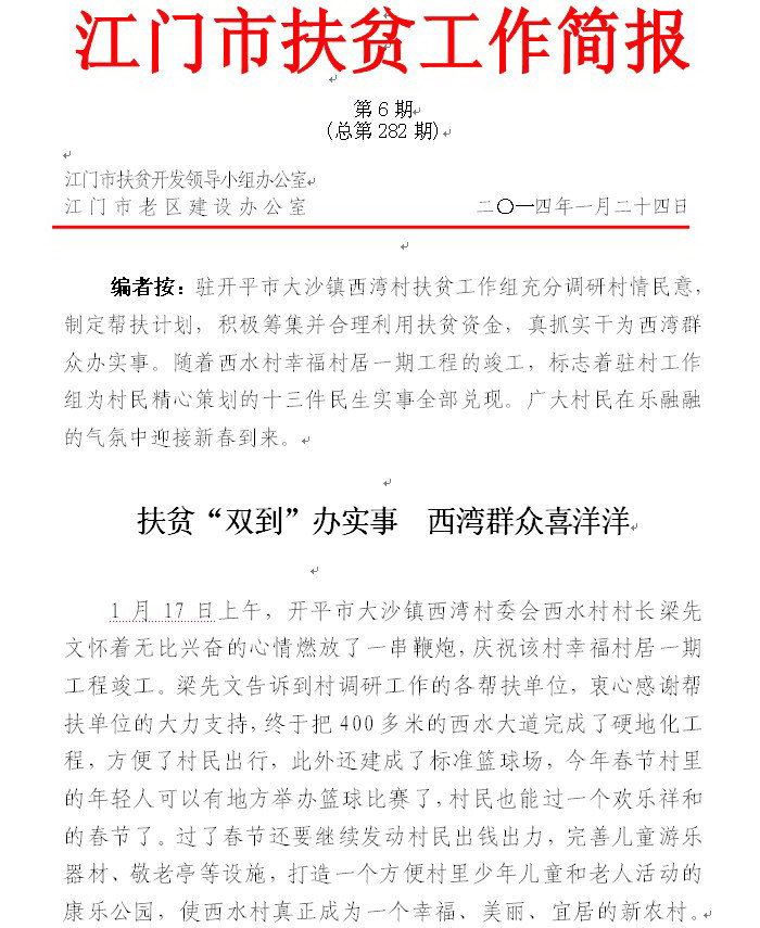 2014年江门市扶贫工作简报第6期(总第282期)