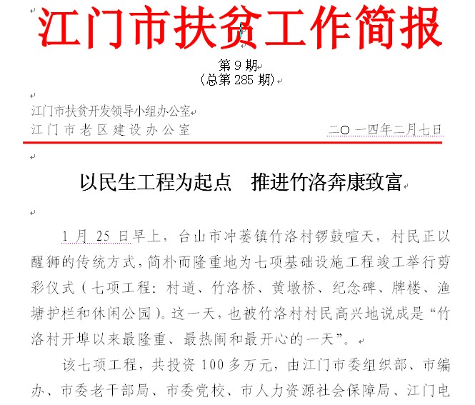 2014年江门市扶贫工作简报第9期(总第285期)