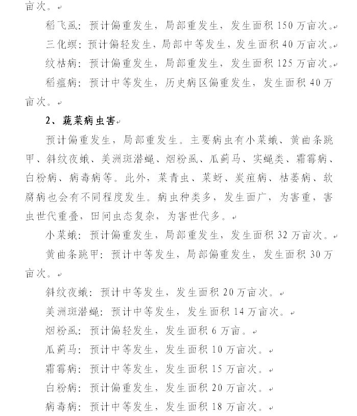 2014年上半年农作物病虫发生趋势预测(农作物病虫情报第六期)