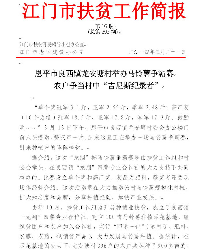 2014年江门市扶贫工作简报第16期(总第292期)