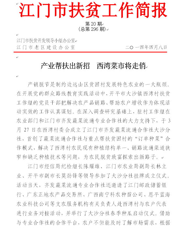 2014年江门市扶贫工作简报第20期(总第296期)