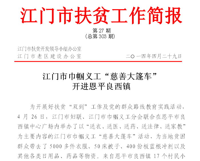 2014年江门市扶贫工作简报第27期(总第303期)