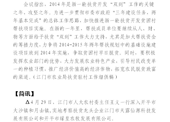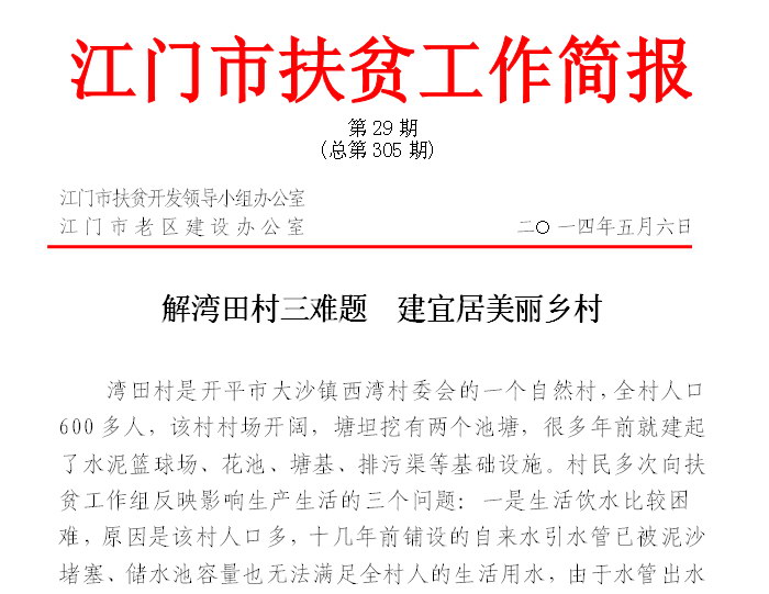 2014年江门市扶贫工作简报第29期(总第305期)