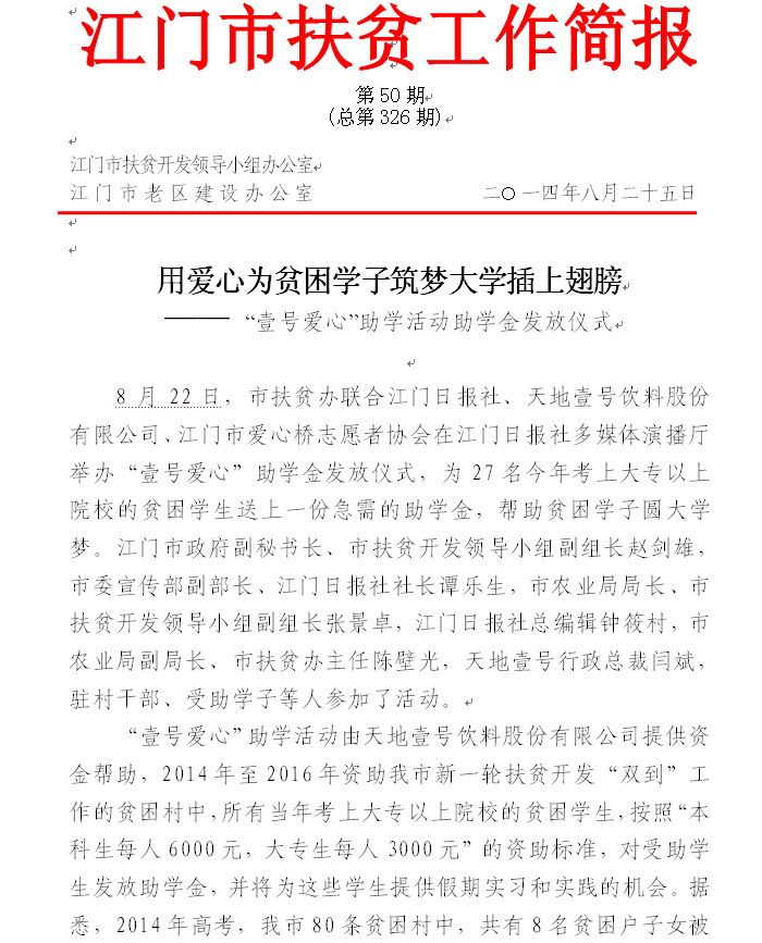2014年江门市扶贫工作简报第50期(总第326期)