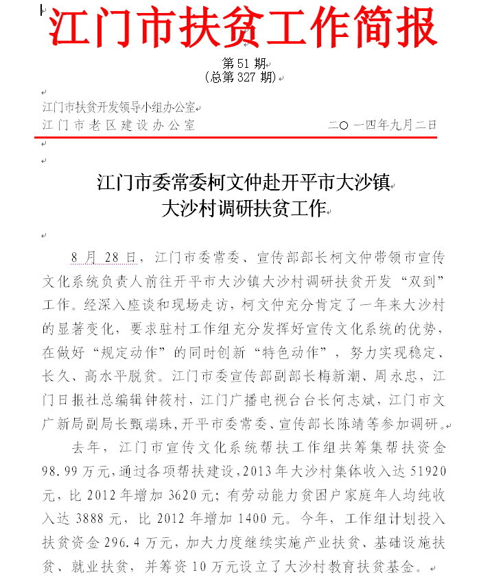 2014年江门市扶贫工作简报第51期(总第327期)