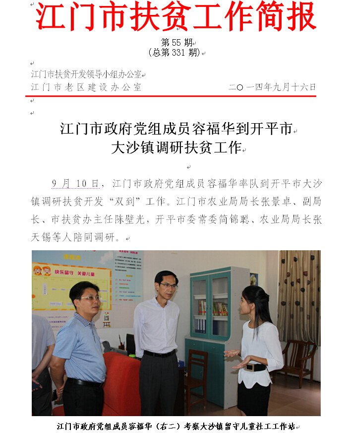 2014年江门市扶贫工作简报第55期(总第331期)