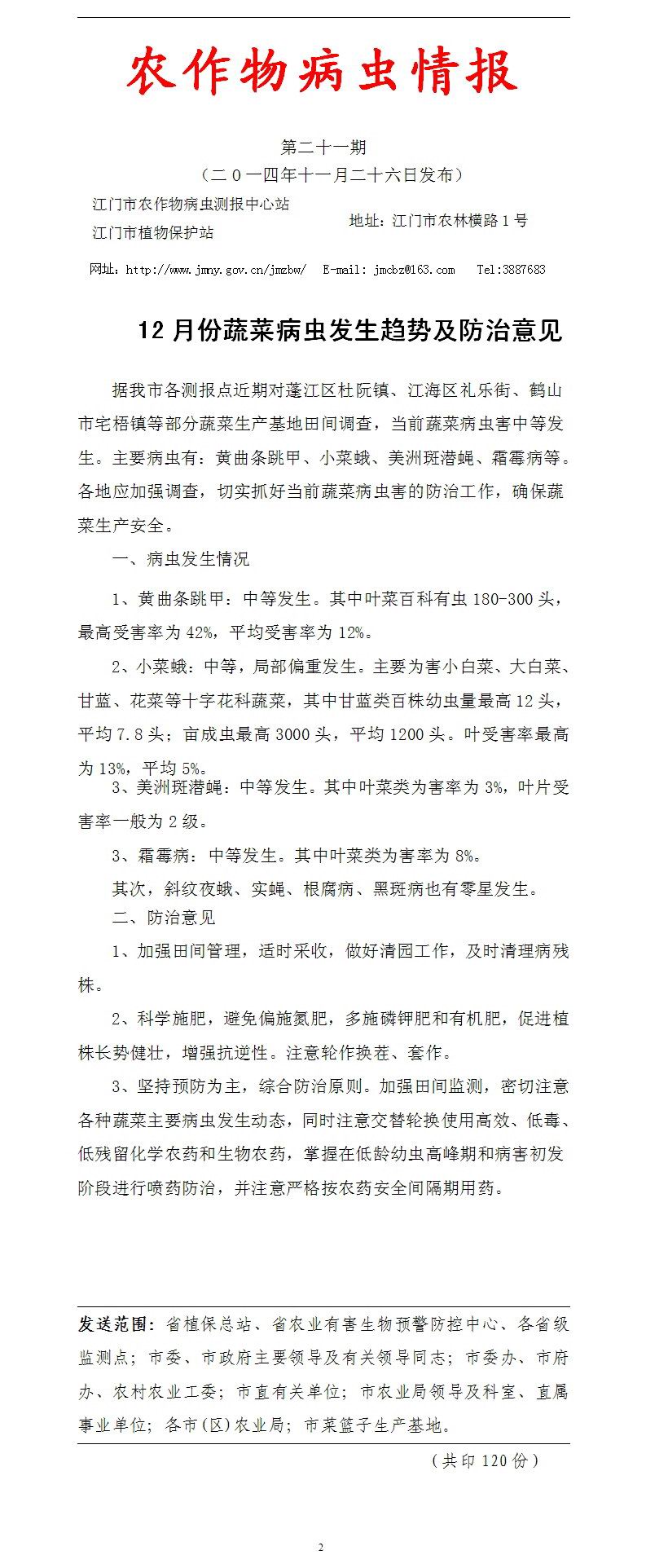 2014年农作物病虫情报第二十一期