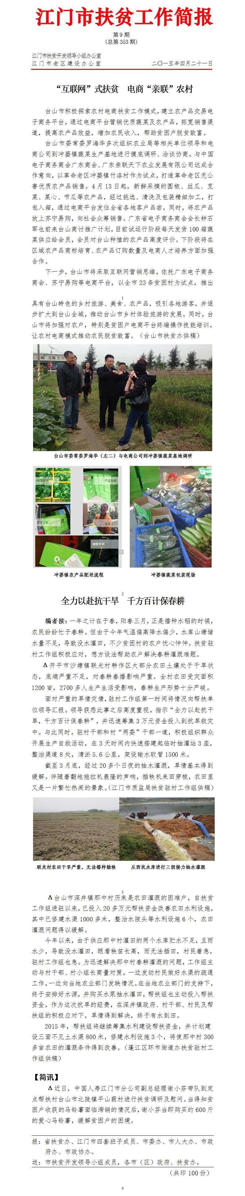 2015年江门市扶贫工作简报第9期(总第353期)