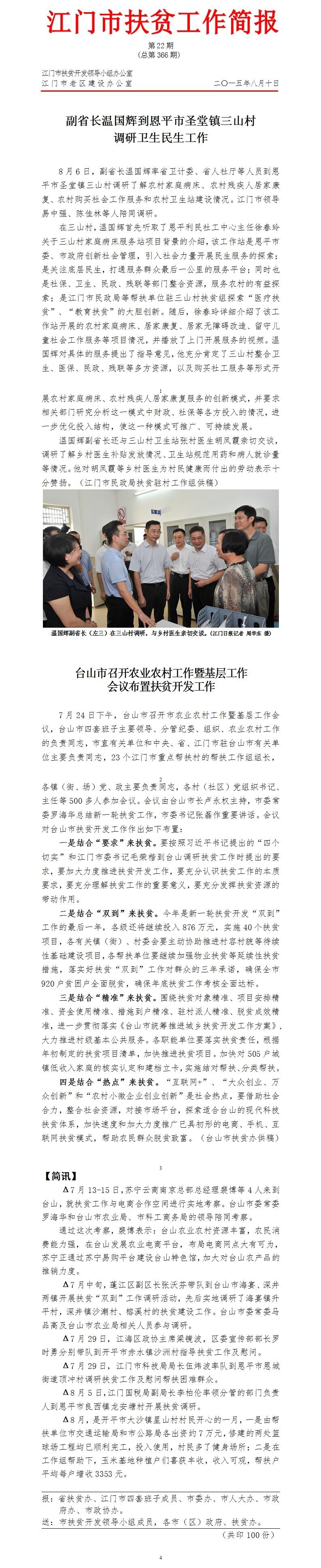 2015年江门市扶贫工作简报第22期(总第366期)