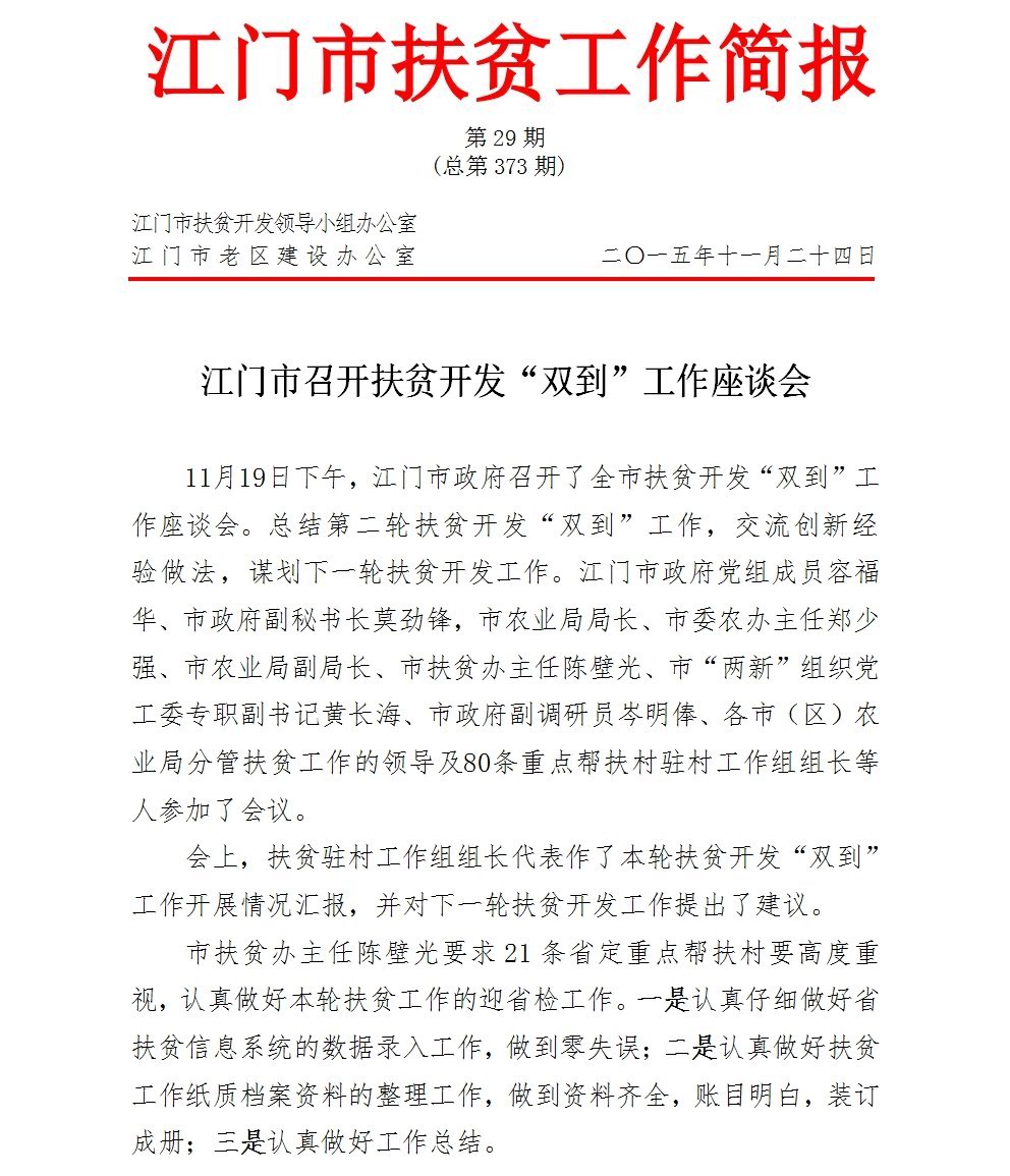 江门市2015年扶贫简报第29期(总373期)