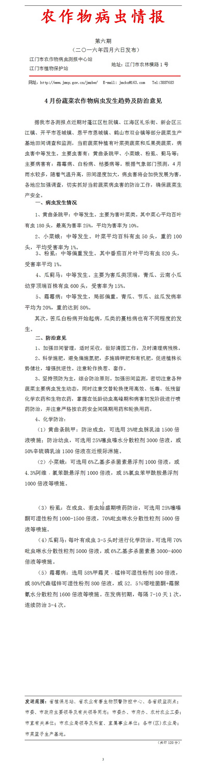 2016年农作物病虫情报 第六期