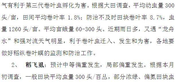 2016年农作物病虫情报 第十期(早稻中后期主要病虫发生趋势及防治意见)