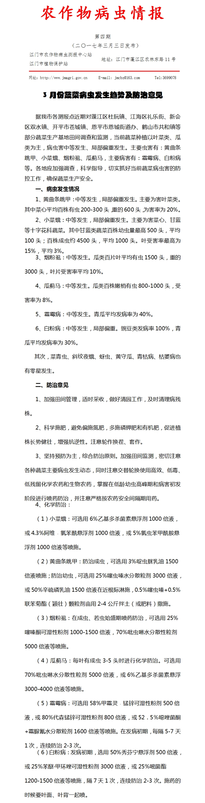 2017年农作物病虫情报 第四期