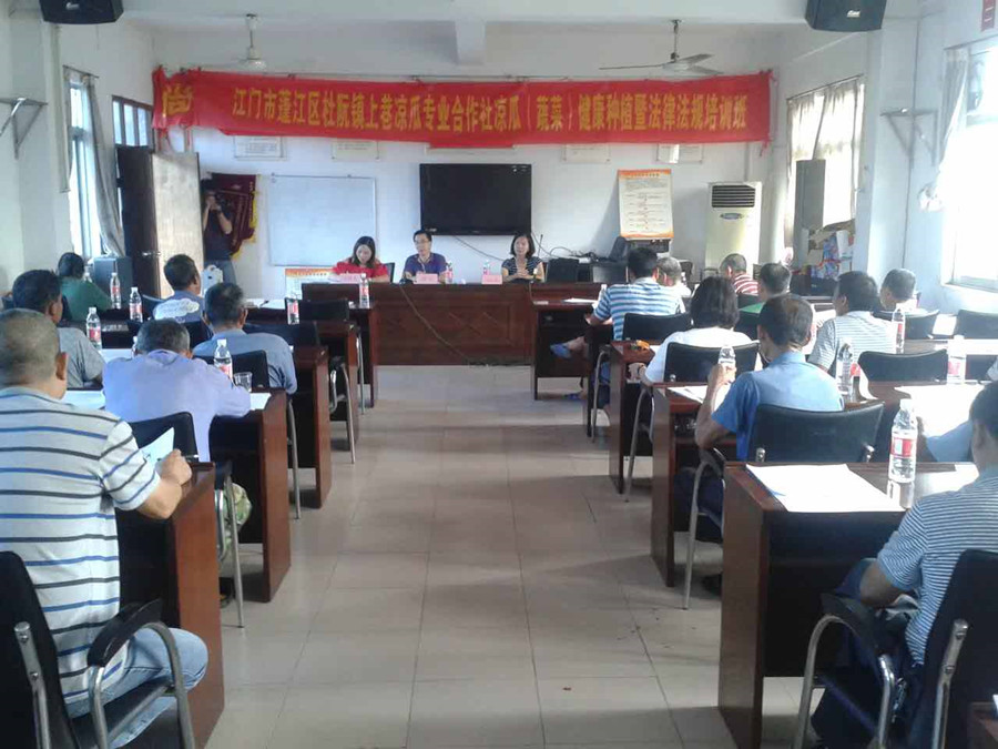 6月23日上午,由蓬江区杜阮镇上巷凉瓜专业合作社主办,市农科所、区农林和水务局协办的杜阮凉瓜(蔬菜)健康生态种植暨法律法规培训班,在该区杜阮镇上巷村委会举办。培训班主办方、杜阮镇各村的凉瓜蔬菜合作社负责人,以及部分社员共计40人参加培训。