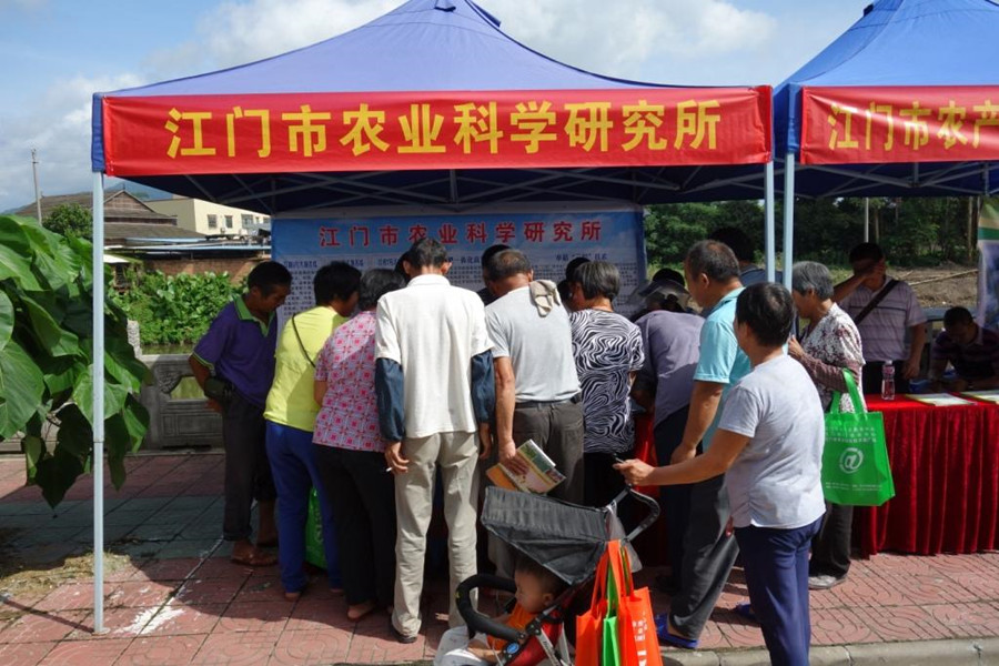 江门市农科所派出了4位种植、种业、土肥等方面的农技专家,把先进的农业技术知识和优新品种带到现场。艳阳高照,却不及人们的热情,前来活动现场的群众络绎不绝,农科所摊位前热火朝天,农技专家们一边和前来群众交流生产经验,一边派发各种农作物高效栽培技术和优质试种种子给群众。活动共派发宣传材料300份,试种种子500份,惠及人数304人。
