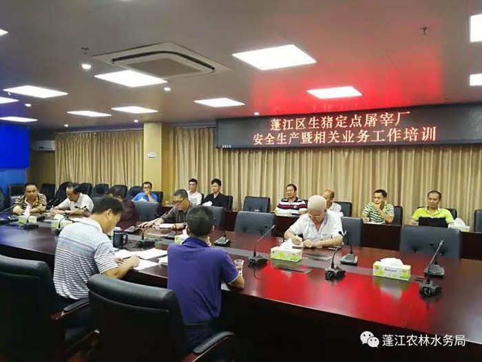 (召集区内屠宰企业和相关镇街进行业务培训)