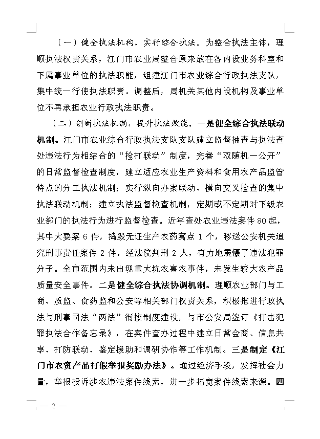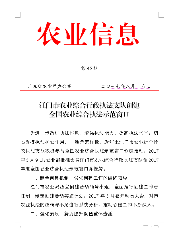 农业信息第45期 江门市农业综合行政执法支队创建全国农业综合执法示范窗口
