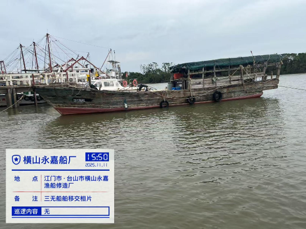 近期,本单位在台山市开展联合执法检查中发现了一批涉嫌涉渔“三无”船舶,船舶具体情况如下(船舶照片见附件):