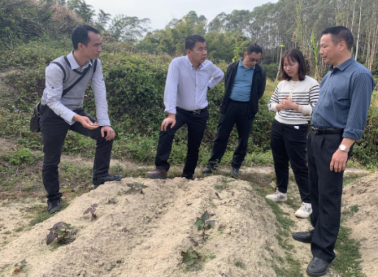 科技服务的第三站是鹤山市龙口镇尧西村,村里200多亩撂荒地的复耕复种问题愁坏了承包户李先生。科技人员与李先生一起查看了撂荒地的基本情况。科技人员针对撂荒地山坡地多、水源供应不足等问题提出了水源保证措施,同时建议承包户因地制宜,前期以薯类、玉米等作物为主的栽种方案,积极按照农业部门开展撂荒地复耕复种的政策要求,赶时间,提质量,增效益。