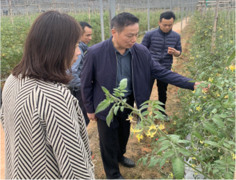 随后科技人员来到鹤山址山镇蔬菜种植户黄先生的种植场。种植场内主要种植了小番茄、丝瓜等蔬菜品种,现已进入收获期。根据黄先生的技术需求和田间情况的查看,科技人员对其在大棚管理、露地种植存在的一些问题提出了指导意见,并就如何通过后期管理来提高小番茄品质、提高收益给出了实用性的意见,黄先生对科技人员的及时指导表示感谢。