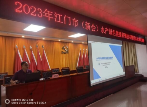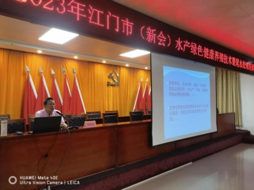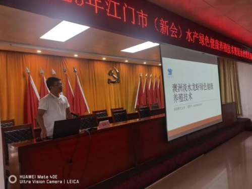 培训班上,谢权忠老师通过实例分析,讲授了南美白对虾绿色养殖技术;梁国飞老师根据澳洲淡水龙虾的发展历程和习性,讲授了藻水养殖、水草养殖、室内养殖和小棚养殖等绿色健康养殖技术;江门市疫病预防控制中心陈明波高级工程师也解读了广东省《水产养殖尾水排放标准》,并讲解了池塘标准化改造的技术。