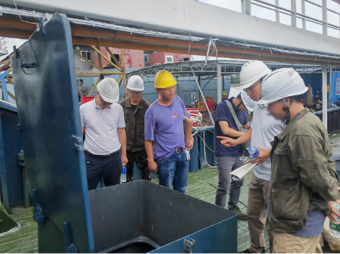 7月2日,市海洋综合执法支队副支队长钟树年带队到台山市大江镇渔船建造企业开展渔船检验工作。