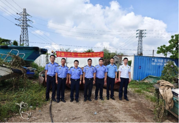 9月13日,市海洋综合执法支队台山大队在广海烽火角举行涉渔“三无”船舶拆解现场会,对前期依法查扣并完成公示等流程的29艘涉渔“三无”船舶进行集中拆解。市海洋综合执法支队派员参加。
