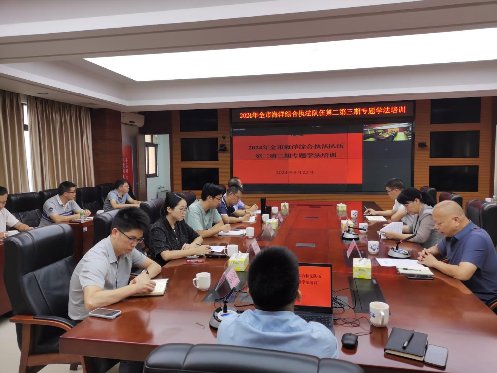 9月25日,市海洋综合执法支队(下称“江门支队”)举办全市海洋综合执法队伍第二、第三期专题学法培训,由江门支队渔业执法科和海洋执法科主要负责同志分别对新修订的《中华人民共和国野生动物保护法》和《中华人民共和国海洋环境保护法》作专题授课。江门支队设主会场,各大队设分会场,支队班子成员及各科室、各大队执法人员参加了培训。