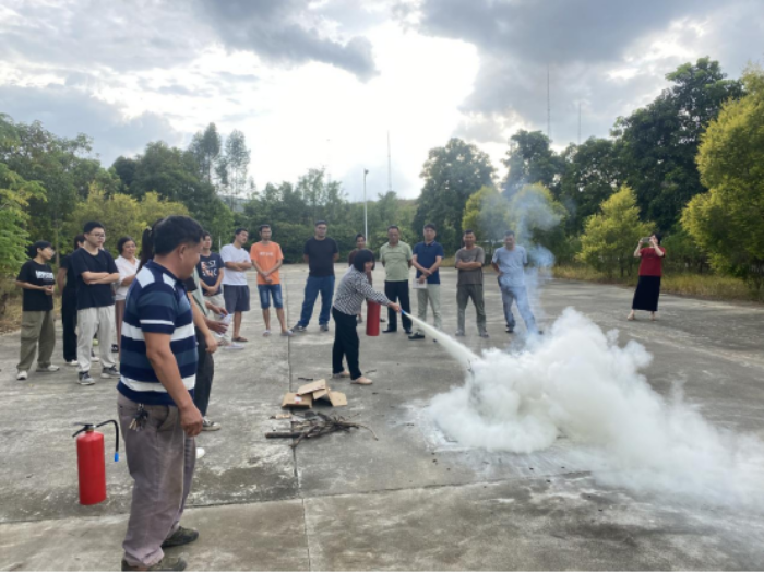 在演练环节,陈老师实地演示干粉和水基灭火器使用方法,通过实践加深大家对消防器材使用的掌握程度,参训人员在老师邀请下积极参与互动,现场气氛活跃。