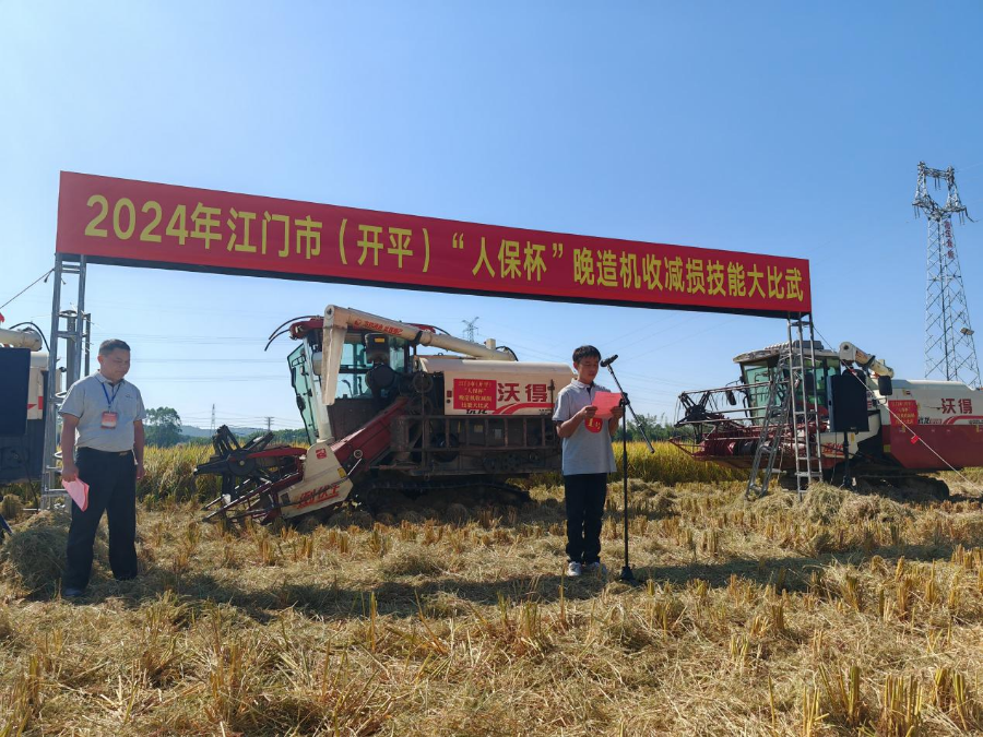 11月8日,江门市(开平)“人保杯”水稻机收减损技能大比武在开平市沙塘镇拉开帷幕,江门市农业农村局农机科,省农业技术推广中心农机部,中国人民财产保险股份有限公司江门市分公司,江门各县(市、区)农业农村部门分管农机工作领导、农机系统的干部,农机操作手,种植大户,相关媒体以及附近的村民近100人参加了本次活动。