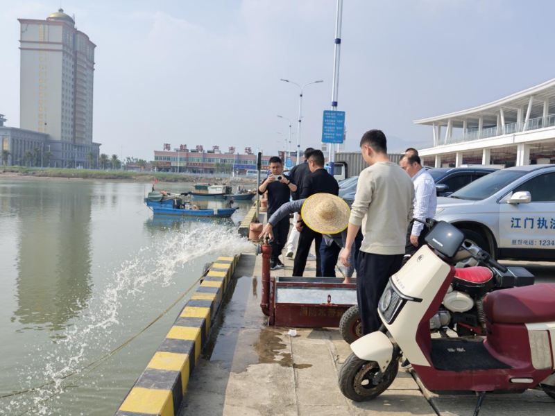 2026年1月5日,市海洋综合执法支队渔业执法科在江顺大桥至新会睦洲水域开展执法巡航行动,共出动执法船艇2艘,执法人员11人次,检查渔船8艘,派发宣传资料8份,对临水作业不穿戴救生衣行为现场责令整改,查扣涉渔“三无”船舶1艘。